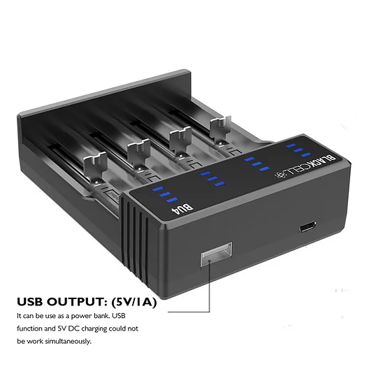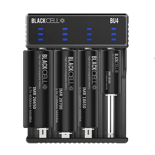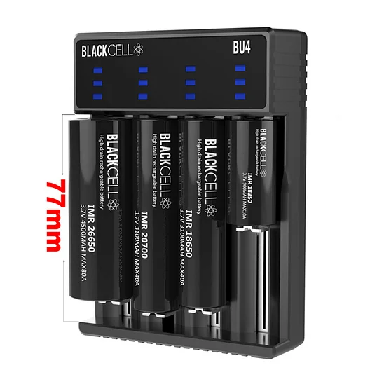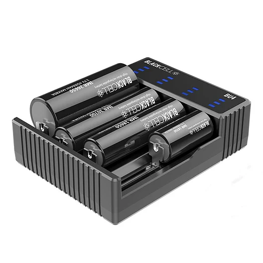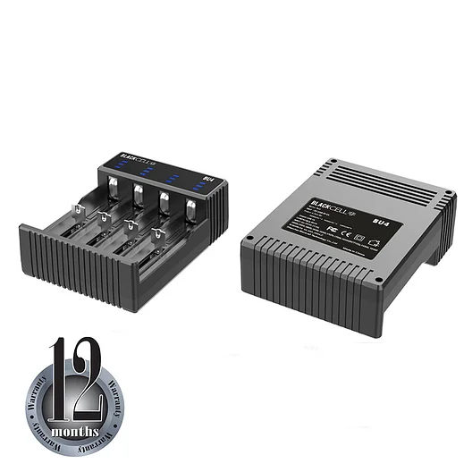Charging times depend on each batteries current capacity, although the independent output (1A, 2A) and pulse charging circuit are compatible with any cylindrical Li-ion batteries (3.6/3.7v), Ni-MH and Ni-Cd batteries ranging in size between 10440 up to 21700. The BU4’s 3 LED display allows for clear viewing of the current charging status.